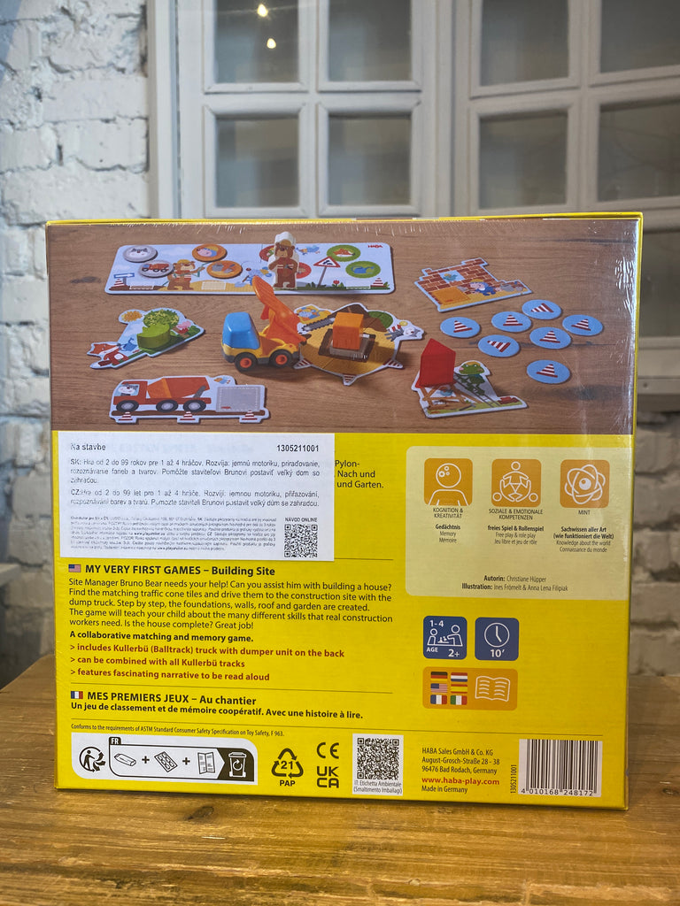Staviteľ medvedík Bruno potrebuje pomôcť so stavbou domu. Hráči musia nájsť zodpovedajúce časti a odviesť ich na stavenisko pomocou sklápačky. Postupne vznikajú základy, steny, strecha a záhrada. Zábavná hra pre najmenšie deti. Hra je veľmi pekne spracovaná s krásnymi ilustráciami. Pravidlá sú prispôsobené malým deťom a herný materiál je prispôsobený pre malé detské ruky. Počet hráčov je 2 až 4, doba jednej hry je cca 10 minút.