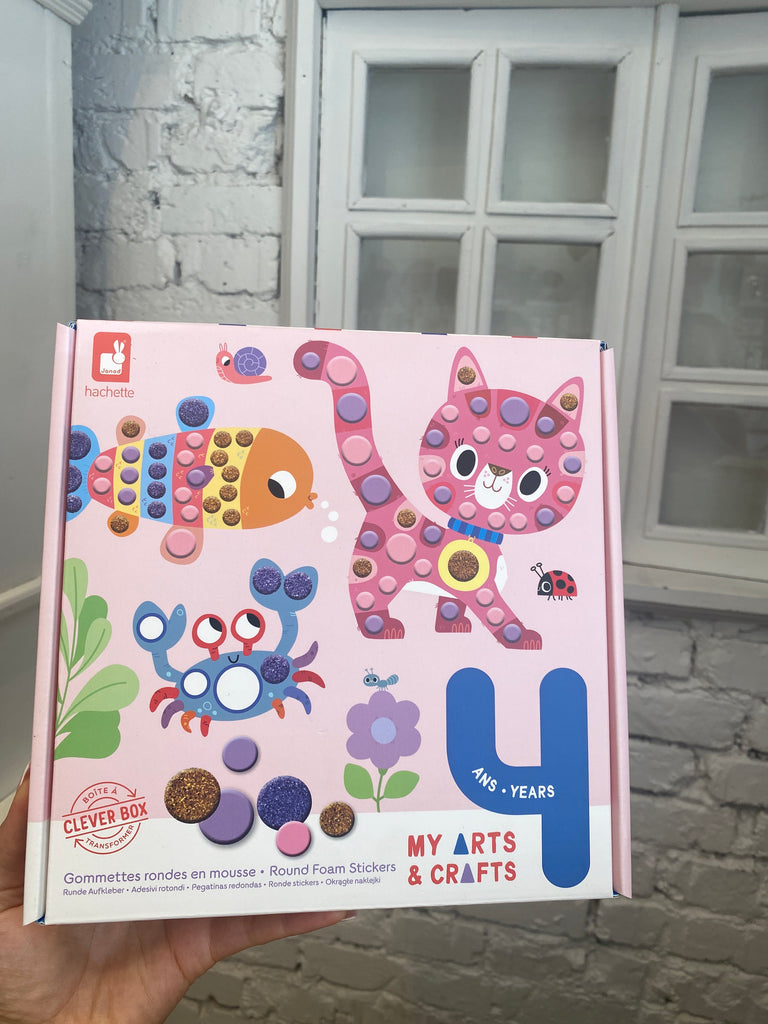 Tento umelecký a remeselný box je ideálny pre deti od 4 rokov. Sledujte, ako malé deti pracujú na svojich jemných motorických zručnostiach a kreatívnom talente, keď zdobia 4 mimoriadne roztomilé obrázky zvieratiek okrúhlymi penovými nálepkami!