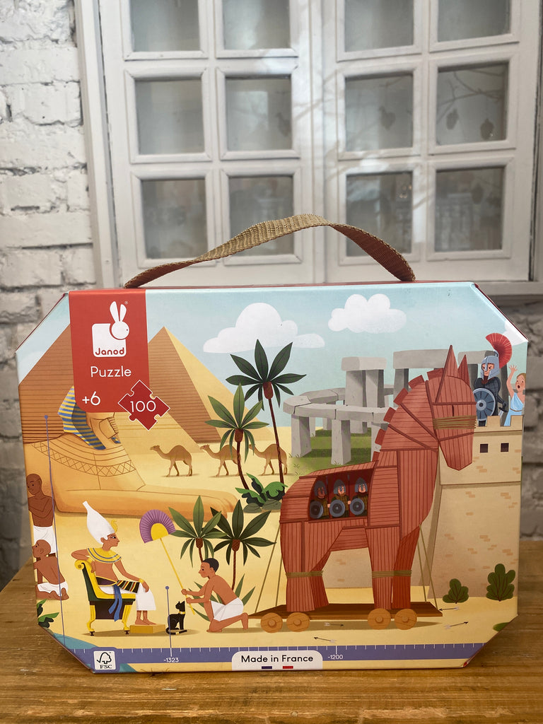 Ste pripravení na cestu späť v čase? Ponorte sa do éry prvých veľkých impérií s týmto 100-dielnym ilustrovaným vlysom ??na tému staroveku a mytológie, ktorý je vhodný pre deti od 6 rokov. Toto panoramatické puzzle s rozmermi 100 x 20 cm ponúka úplné ponorenie sa do obdobia histórie, ktoré formovalo základy našej civilizácie. Dielce sú ideálne pre malé ručičky 6-ročných detí a pomáhajú tak rozvíjať ich jemnú motoriku. Táto vzdelávacia skladačka je tiež ideálna na stimuláciu koncentrácie a trpezlivosti. Je to zábavný spôsob, ako sa učiť históriu! Dodávaný plagát možno použiť ako model a obsahuje aj historické informácie na podporu vzdelávacieho aspektu hádanky. Vlys slúži ako plán, ktorý deťom pomôže objaviť túto éru mýtov a legiend. Potom môžu použiť hlavolam ako nástroj na vyhľadávanie a nájdenie, čím sa vyzvú, aby rozpoznali všetky detaily, ktorými je naša skladačka plná, od najväčších, ako je trójsky kôň, až po tie najmenšie, ako sú mačky uctievané v starovekom Egypte. Celá sada je dodávaná v atraktívnom kufríku s rukoväťou pre pohodlné skladovanie a prenášanie. S touto hádankou môžu deti a dospelí zdieľať chvíle pokoja a vyrovnanosti: je to príležitosť učiť sa a stimulovať predstavivosť tých najmenších. Tak čo, ste pripravení na cestu časom? Vyrobené vo Francúzsku, toto puzzle je vyrobené s atramentmi na rastlinnej báze a lepenkou FSC™.