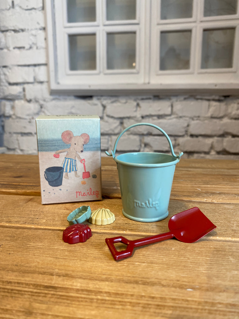 Roztomilý set do piesku aby myšky mohli stavať hrady a robiť koláčiky. Prázdniny sa môžu začať.