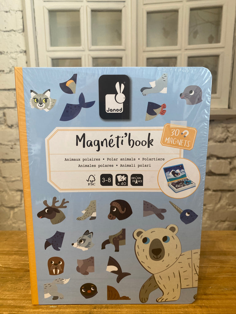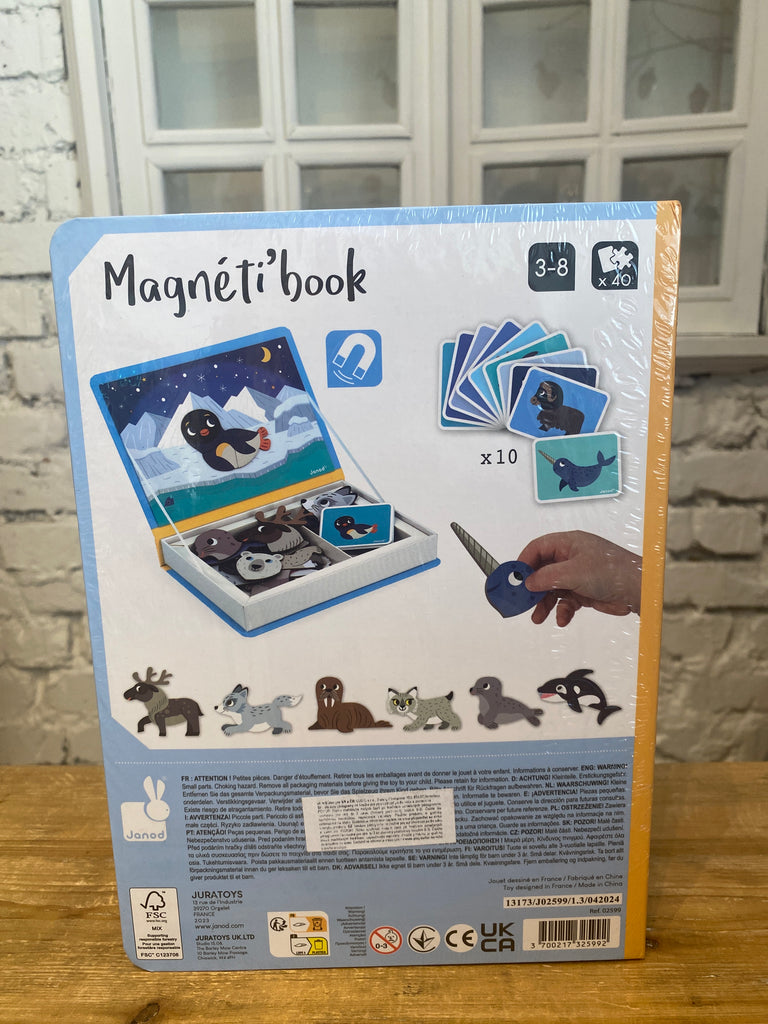 Táto magnetická hračka sa skladá z 30 magnetov a 10 kariet. Cieľom hry je reprodukovať zvieratká na magnetickej tabuli podľa šablón na kartách. Vaše dieťa bude môcť objaviť polárnu líšku, tuleňa, pižmoňa alebo narvala! Polárne zvieratká Magneti'book vám okrem vzdelávacej stránky umožňuje miešať magnetky a vytvárať vtipné zvieratká. Vaše dieťa môže napríklad skombinovať hlavu ľadového medveďa s plutvami kosatky a nohami tučniaka. Zvieratká nachádzajúce sa v tejto hračke je možné zamiešať aj so štandardnými zvieratkami Magneti'book, pretože magnety sú kompatibilné! Ideálne na vytváranie mnohých rôznych svetov!