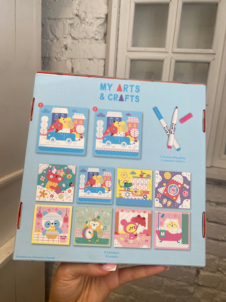 Dokončenie 4 dosiek trvá asi 1,5 hodiny, ale dajú sa robiť znova a znova, pretože sa dajú vymazať, čo znamená, že môžete cvičiť a robiť rýchly pokrok! Táto kreatívna súprava je súčasťou radu My Arts & Crafts, ktorý sa môže pochváliť mimoriadne roztomilými zvieratkami v pastelových farbách a predstavuje malým deťom prvé praktické remeselné činnosti.