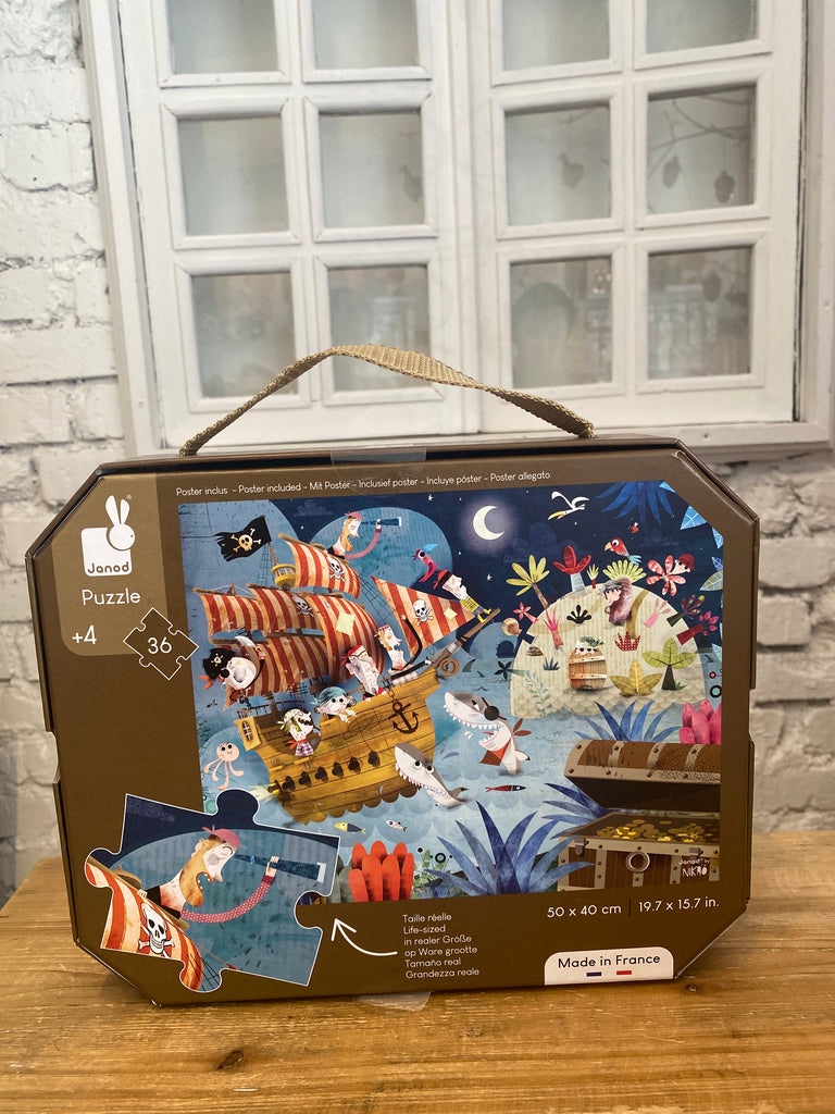 Kto sa pridá k pirátom a zažije s nimi neskutočné dobrodružstvá pri hľadaní pokladu?Krásne ilustrované puzzle s motívom pirátov určite poteší každého malého chlapca, puzzle sú balené v originálnom a praktickom kufríku vhodnom na doma ja na cesty.
