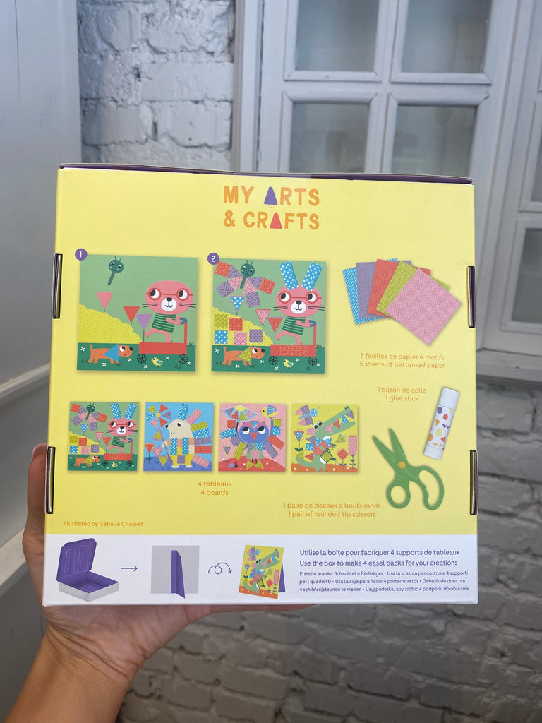 Táto remeselná súprava obsahuje všetko, čo budú najmenší potrebovať na dokončenie 4 obrázkov rozrezaním vzorovaných papierových prvkov a ich prilepením na správne miesto.
