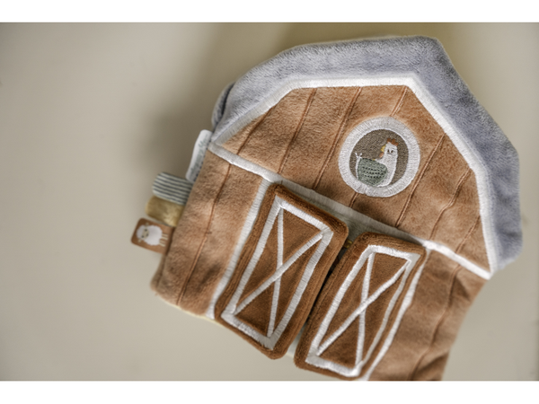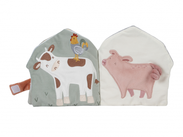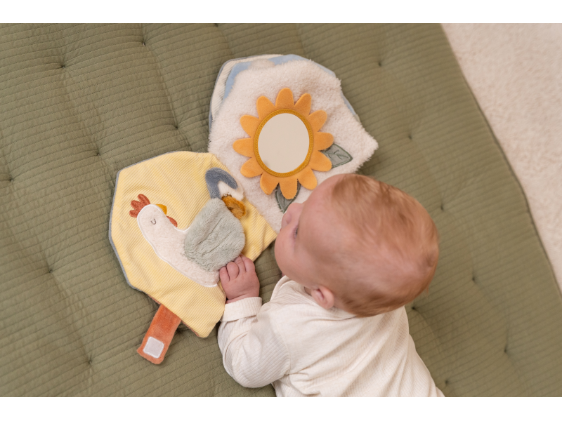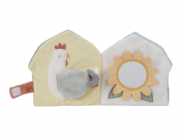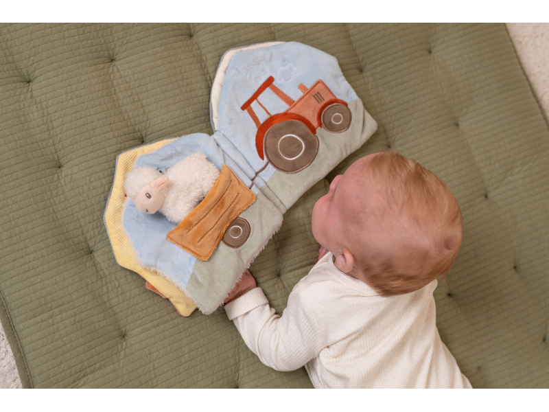 Mäkká textilná knižka s krásnymi motívmi zo života na farme upúta pozornosť vášho dieťaťa množstvom aktivít, ukrytých na jednotlivých stránkach. Na skúmanie a prezeranie lákajú ukryté hračky, vyšívané ilustrácie, rôznorodé textúry alebo napr. slniečko s bezpečným zrkadlom. Knižka pomáha rozvíjať jednotlivé zmysly dieťaťa aj koordináciu ruka/oko.
