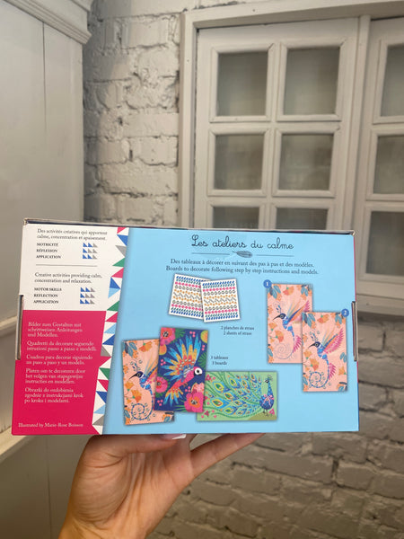 Midi sada Janod Atelier na tvorenie a podporu zručnosti a predstavivosti u detí. Kreatívne hračky pre deti nezaberajú veľa miesta, sú vhodné na cesty aj na doma, v zdraví aj chorobe a zabavia deti na dlhé hodiny. Tvorenie rôznymi technikami podporuje sústredenie a koncentráciu, prirodzené skúmanie a výtvarné schopnosti. Kreatívna sada obsahuje 3 listy s obrázkami na ozdobenie a 2 listy plné farebných flitrov "diamantov" rôznych tvarov a farieb na nalepovanie.
