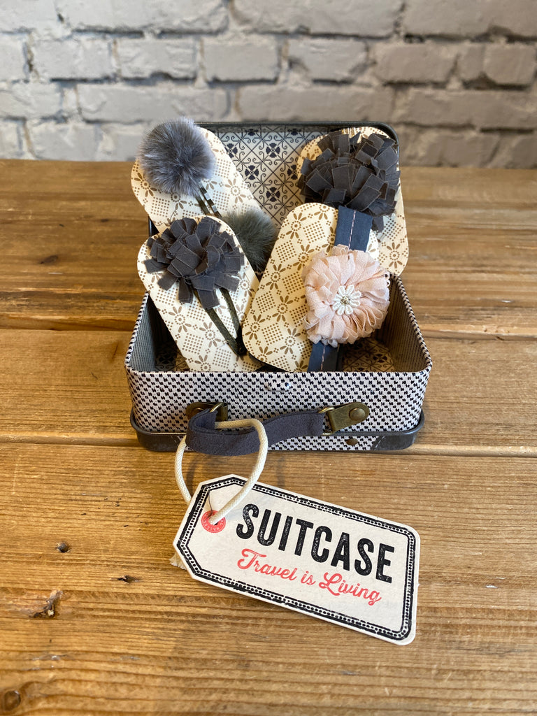 Krásne vlasové doplnky od značky Maileg pre malé parádnice zabalené v kovovom kufríku. V balení nájdete 2 pinetky, jednu sponku, čelenku a gumičku. Je to ideálne darčekové balenie pre milovníčky Mailegu.