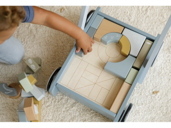 Krásny drevený vozíček zaujme nielen svojim prevedením, ale ponúka rôzne aktivity pre Vaše dieťatko. Vozík obsahuje 27 drevených kociek rôznych tvarov. Výška rukoväte je v správnej výške, aby najmenším pomohla s prvými krôčikmi.