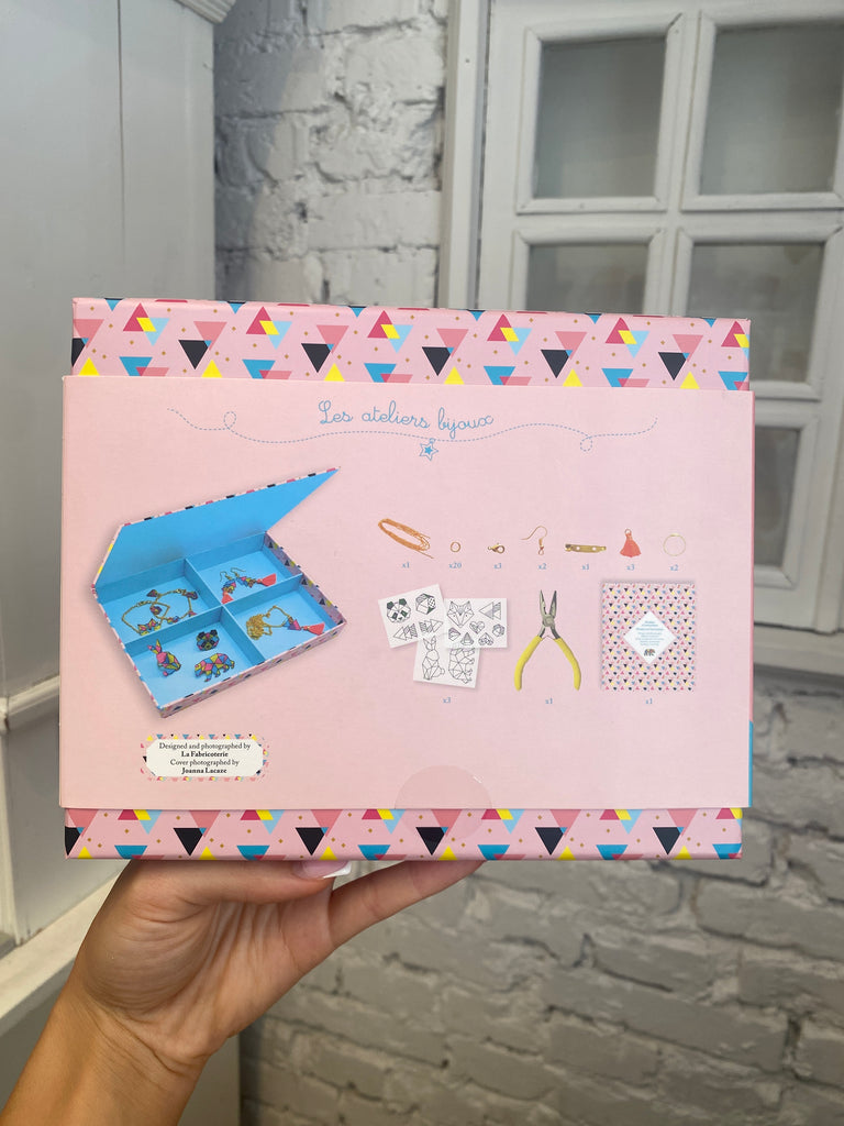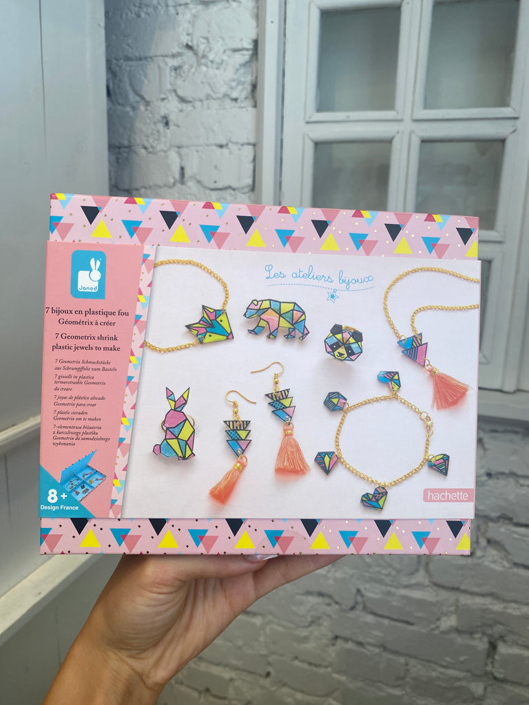 Kompletná súprava na vytvorenie 7 kusov šperkov: 2 náramky, 1 náhrdelník, 1 náušnice a 3 prstene. Postupujte podľa návodu na vytvorenie šperkov krok za krokom. Krabička obsahuje: 12 plastových dielov, 2 hárky s potlačou, 1 x 1-metrovú retiazku, zapínania, háčiky na náušnice, rôzne prívesky, kliešte a 1 brožúru s návodom. Táto aktivita je vhodná na stimuláciu manuálnej zručnosti, kreativity a zábavy pri vytváraní vlastných šperkov!